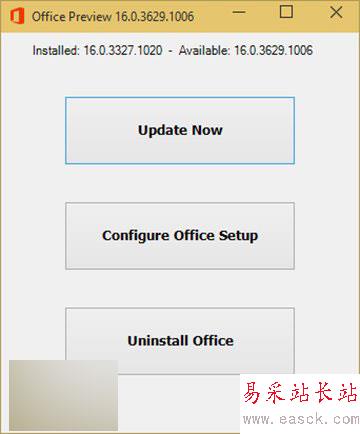 ▲ 如果你安裝過之前的2014年10月的Office2016預覽版,直接點擊“Update Now”進行升級安裝;如果沒安裝過10月的Office2016版本,點擊“Configure Office Setup”