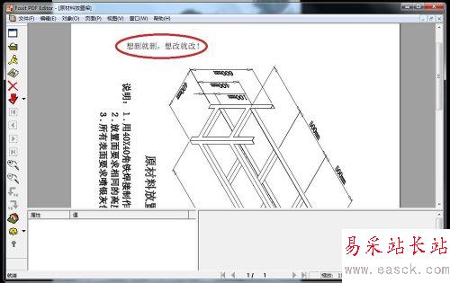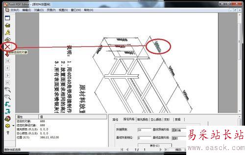 4、在打開的PDF文檔中,用鼠標選定我們需要刪除的文字或線條,再點擊左邊工具欄上的刪除按鈕,很輕松就將選定的目標刪除掉了。