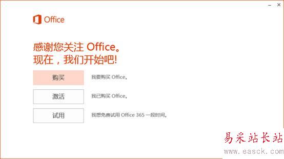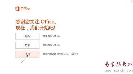 Office 365版本出廠可以免費試用30天,首次打開會提醒激活、購買、試用,如果需要購買可以直接聯系微軟即可,以下介紹一下如何試用,如圖所示: