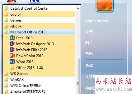 現在能在開始菜單中找到office2013 發送快捷方式到桌面即可