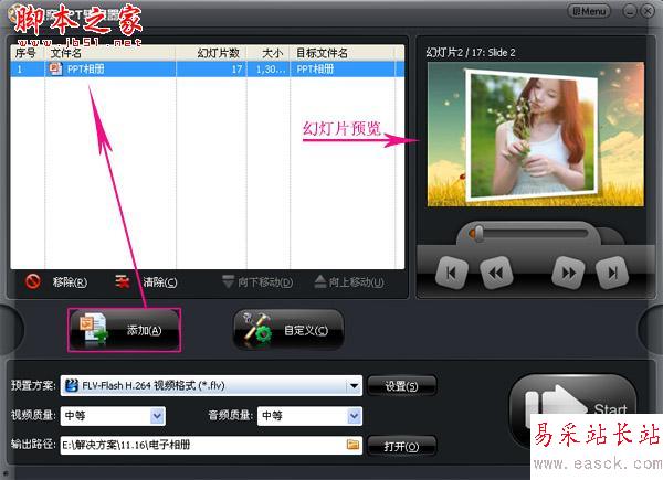 打開貍窩照片制作視頻軟件,通過“添加(A)”按鈕,把我們剛剛保存的PPT相冊導(dǎo)入軟件。