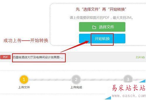 4、完成文件上傳操作,界面會(huì)顯示該文件名,此時(shí)只需單擊“開(kāi)始轉(zhuǎn)換”按鈕,靜靜等待即可。