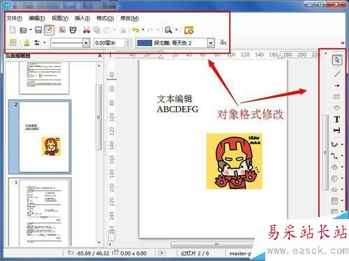 3、文本內容編輯方式和ppt相同;圖片只能進行簡單的編輯,但是可以通過右擊選擇用外部編輯器來對圖片修改。