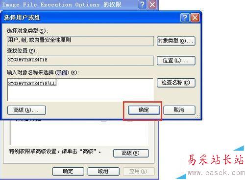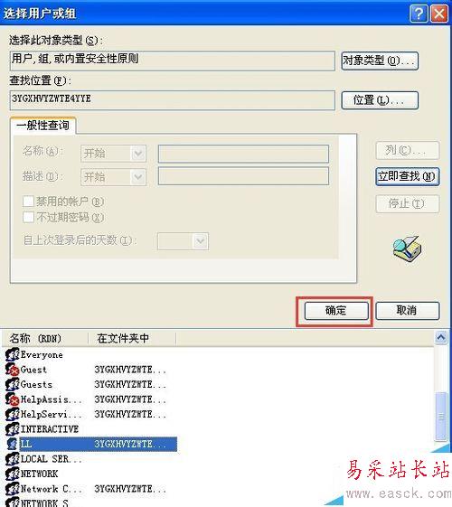 6、在列表下拉框中,找到自己用戶名字,然后選中用戶,點(diǎn)擊確定,完成用戶權(quán)限增加。之后都是點(diǎn)擊“確定”。