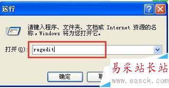 2、既然沒有權(quán)限,那么我們需要給當(dāng)前用戶授予權(quán)限。首先,點(diǎn)擊開始按鈕,選中“運(yùn)行”框,然后輸入 regedit,打開注冊表編輯器
