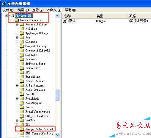 3、按照路徑 HKEY_LOCAL_MACHINE/SOFTWARE/Microsoft/Windows NT/CurrentVersion/Image File Execution Options 打開注冊表中的選項(xiàng)