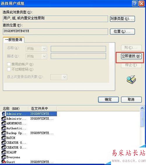 5、點(diǎn)擊添加按鈕,在彈出的對話框中,點(diǎn)擊高級按鈕,在打開的對話框中,點(diǎn)擊立即查找