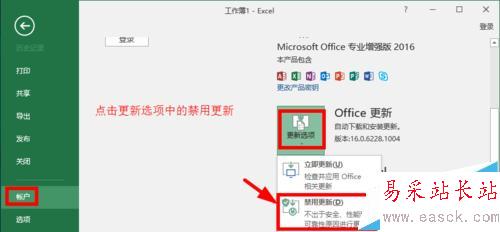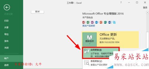 1、這里小編介紹下在Office2016中設置關閉自動更新方法,先打開一個組件,比如可以打開Office2016的EXCEL電子表格軟件,其它組件也是可以的。