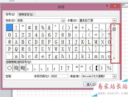 6、點擊其它符號后,會彈出一個多符號的界面,右側的滾動條可以讓我們看到更多的選項