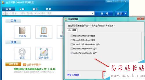 3、這里找到插件設置,可以設置金山詞霸對PDF取詞