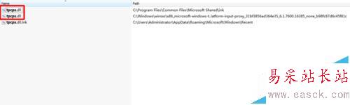 2、利用Windows的搜索功能(Ctrl+F)或者別的搜索工具,找到兩個重要文件:InkObj.dll和TPCPS.DLL,這兩個文件隨著Windows的版本更新會出現很多個位置,這里不用做區分,將所有的同名dll均注冊一遍就可以了。操作全部在下圖。