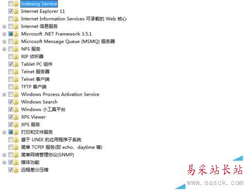 2、按照提示去查找“打開或關閉Windows功能”,并沒有桌面功能選項。這是問題出現的原因,跟這個現象相同的讀者可以在下一個欄目中找到解決辦法。