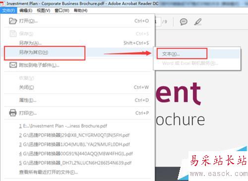 使用Acrobat Reader 軟件。 大家可能以為Acrobat Reader 只是一款PDF文檔的閱讀工具,殊不知其實它還可以將PDF文檔轉換成文本文檔格式。具體的操作步驟如下所示: