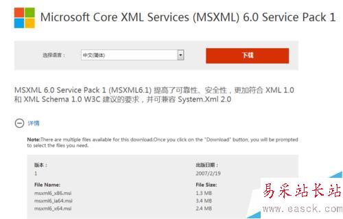 1、下載MSXML 6.0,在微軟官方下載中心就能下載。或者在百度上搜索下載msxml6_x86.msi和msxml6_x64.msi。32位系統(tǒng)只用下載msxml6_x86.msi。