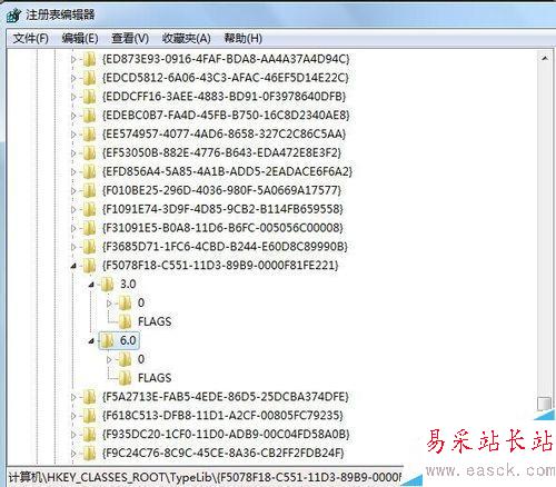 6、依次打開路徑,直到找到HKEY_CLASSES_ROOT/TypeLib/{F5078F18-C551-11D3-89B9-0000F81FE221}/6.0/0/win32。