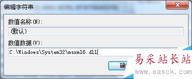 10、將數(shù)值數(shù)據(jù)%SystemRoot%/System32/msxml6.dll更改為C:/Windows/System32/msxml6.dll,改好后點(diǎn)擊確定。
