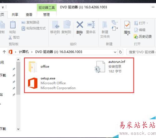 5、在虛擬光區(qū)中加載好Office 2016光盤映像文件以后,記住虛擬光驅(qū)的驅(qū)動(dòng)器根目錄,因?yàn)槟夸浡窂皆诤竺嫘薷呐渲梦募r(shí),是需要使用的。