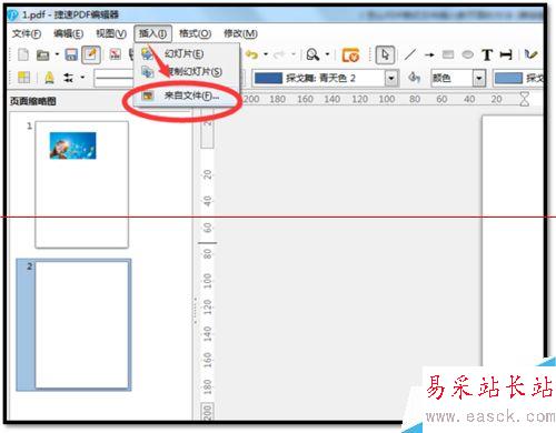 5、選中第二頁(yè)空白內(nèi)容,點(diǎn)擊界面上的“插入——來(lái)自文件”。