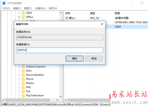 5、雙擊打開OOBEMode,將原來的OEM改為OEMTA并點擊確定,然后關閉注冊表編輯器;