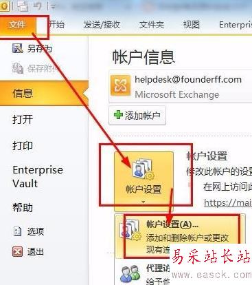 下面我們來看一下如何設(shè)置附加郵箱,由于office的升級,原來的方法在10中并不適用了,我們首先要找到outlook2010的設(shè)置: