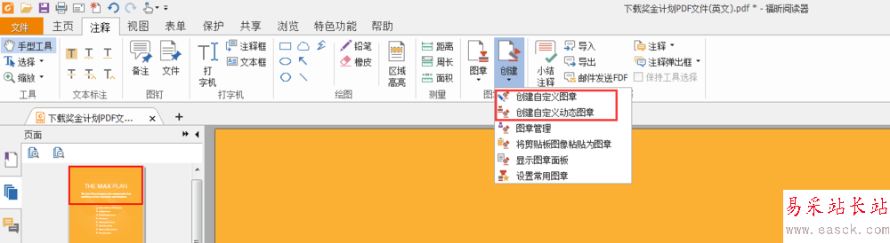 2、點擊“創建”,選擇“創建自定義圖章”或者創建自定義動態圖章。