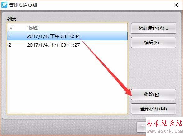5、可以在管理選項(xiàng)中對(duì)已有的頁(yè)眉頁(yè)腳信息進(jìn)行設(shè)置。