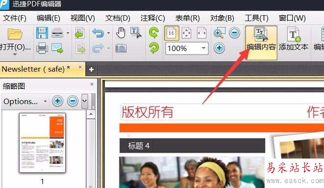 6、也可以使用編輯內(nèi)容工具來(lái)選取頁(yè)面內(nèi)容。