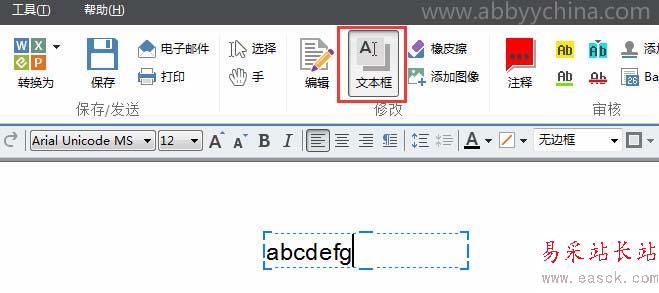 4、若要編輯空白頁面,點擊工具欄上的文本框按鈕,工具欄下面空白文檔上面將出現編輯選項,然后將鼠標移到空白頁面上,在需要添加內容的地方點擊即可輸入內容,還可更改字體樣式、大小、顏色等,完成之后再次點擊文本框按鈕,退出編輯模式,保存文檔。