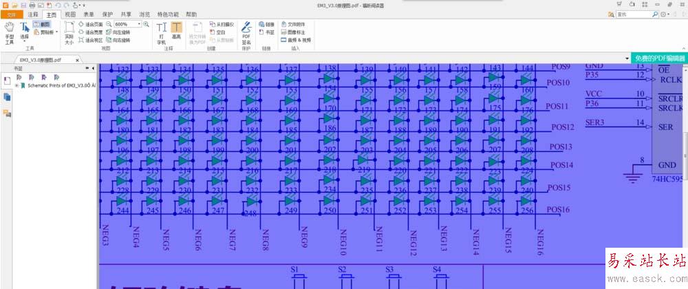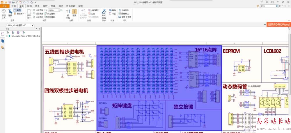 1、打開要打印的圖幅很大的PDF文件。(本例打開的是89C51實驗板的原理圖。整頁打印在A3紙上依舊模糊看不清楚細節(jié)。)