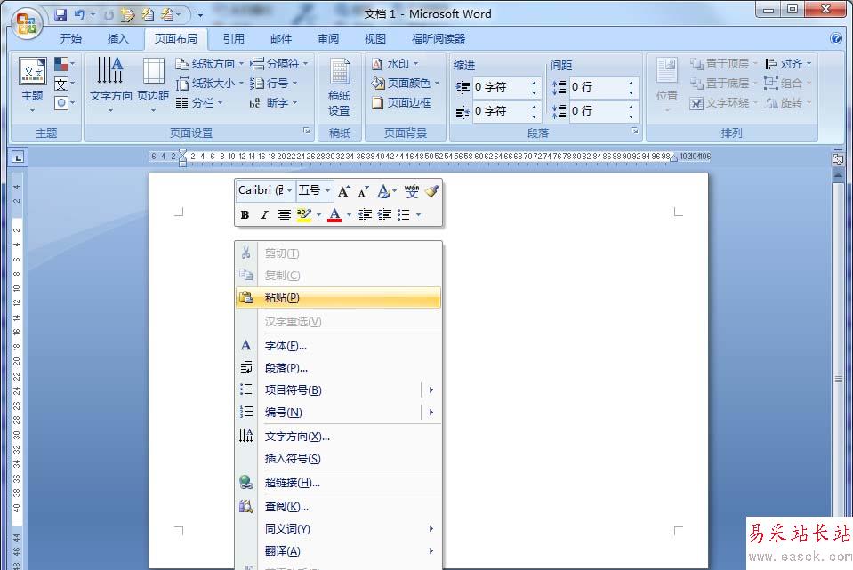 6、打開WORD,新建一個橫向的A3空白文檔。在空白處右鍵單擊,選擇-粘貼。