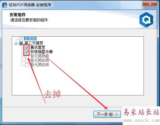 3、點擊+號,將打勾的都去掉,點擊“下一步”。