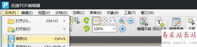 2、然后我們?cè)赑DF編輯器中選擇“文件”菜單,在文件下拉菜單中選擇“打開”選項(xiàng)。