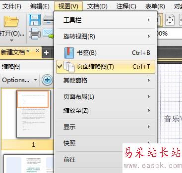 6、在“視圖”菜單中選擇頁(yè)面縮略圖選項(xiàng)。