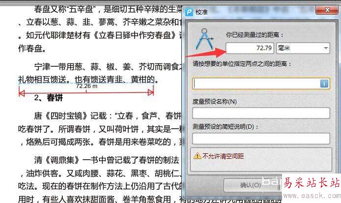 5、如果有偏差,可以用距離工具進行重新測量(小編這里是以文字為例,所以難免有偏差)
