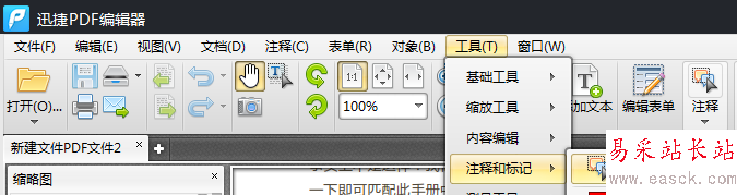 6、接著我們就可以對PDF文件的注釋進行編輯操作了。當然,編輯注釋工具還可以在菜單中的工具下拉菜單中找到。