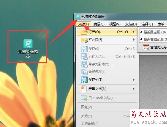 1.到軟件官網(wǎng)下載安裝迅捷PDF編輯器,然后直接打開(kāi)運(yùn)行進(jìn)入軟件的操作界面中,在軟件界面左上角點(diǎn)擊“文件”即可顯示下拉菜單列表,請(qǐng)選擇“打開(kāi)”。
