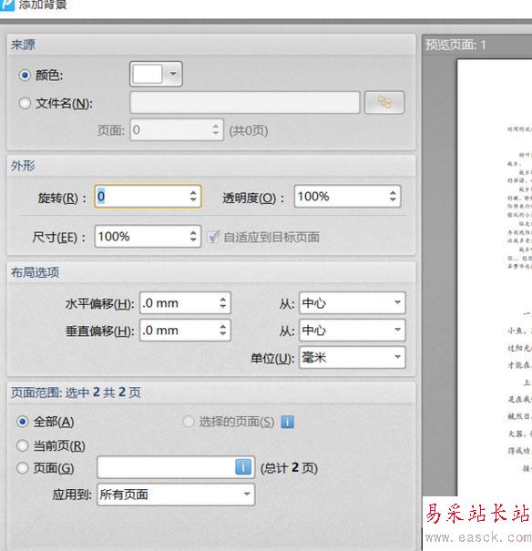 6、最后設(shè)定顯示頁面范圍。設(shè)定完成后就可以點擊確認按鈕完成對PDF文件添加背景顏色了。