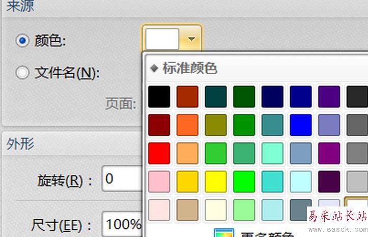 5、這里我們可以選擇添加的背景顏色的透明和尺寸等的選擇。還有圖片的傾斜角度的設(shè)置。
