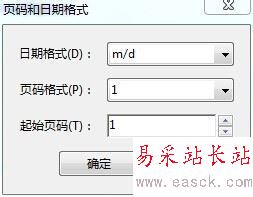 4、如果對格式不滿意,可以進(jìn)行更改。點擊右邊中部的頁碼和日期格式。彈出如下對話框。在頁碼格式下拉菜單中可以選擇你認(rèn)為滿意的格式。根據(jù)你的實際需要設(shè)置起始頁碼值。