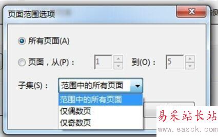 8、PDF中插入的頁碼還可以按奇數(shù)頁和偶數(shù)頁分別插入。這樣你就可以按奇數(shù)頁頁碼在左邊,偶數(shù)頁頁碼在右邊的方式進(jìn)行插入。方法是你在設(shè)置頁碼范圍對話框中下方有個子集。里面進(jìn)行選擇。插好奇數(shù)頁后確定,然后再按以上2-6步操作一遍。再次點擊添加頁面頁腳的時候注意點擊“添加新的”。