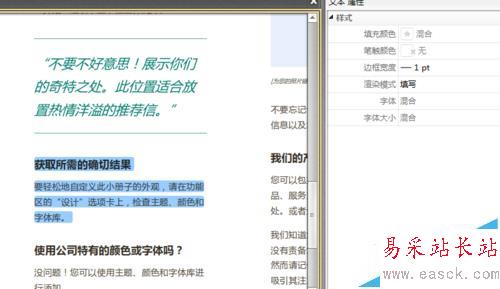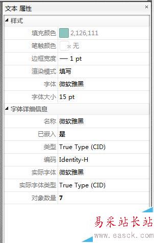 4、選擇好要查看的字體內(nèi)容后,會(huì)在PDF頁面內(nèi)容右側(cè)出現(xiàn)文本屬性頁面,我們可以在文本屬性框的下方看到字體詳細(xì)信息的選項(xiàng)內(nèi)容。
