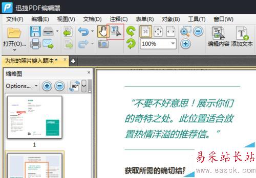 2、然后在接下來的PDF編輯器中,我們可以在工具欄中看到如圖所示的文本查看按鈕,鼠標(biāo)左鍵點(diǎn)擊此工具按鈕。