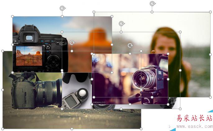 首先在PPT中插入幾張圖片,然后按Ctrl+A鍵全選它們。