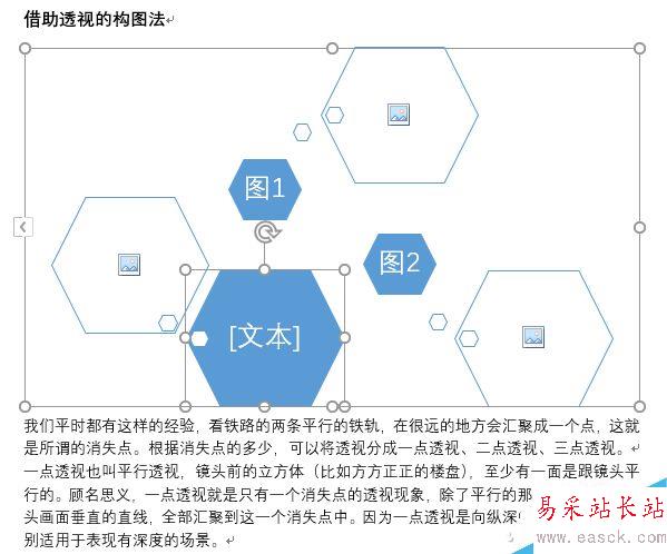 確定后,文字將環繞在圖形四周,版式非常漂亮。當然我們也可以試試其他的環繞效果。