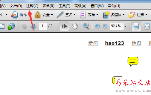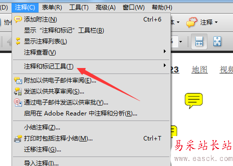 2、點擊了的Adobe Acrobat的菜單中的注釋的菜單。