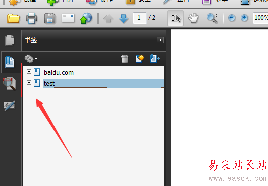 2、點擊了的Adobe Acrobat的左側的中的書簽的選項。