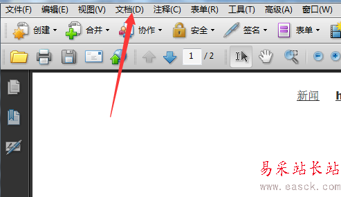 2、點(diǎn)擊Adobe Acrobat的菜單中的文檔的菜單。