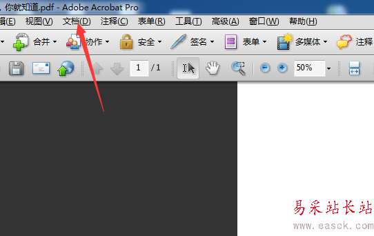 2、然后進(jìn)行點(diǎn)擊的Adobe Acrobat的菜單中的文檔的菜單。