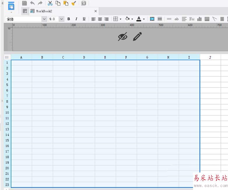 1、通過快捷方式打開FineReport工具,新建一個空白報表,注意調整單元格,如下圖所示: