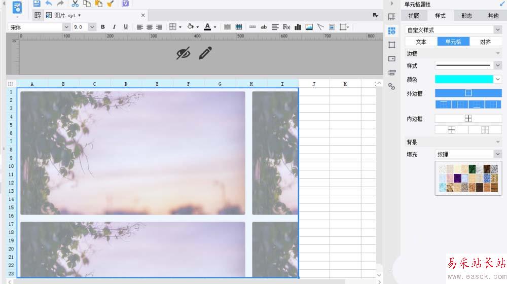 6、返回到報表設計器,修改單元格樣式,邊框顏色和樣式、內外邊框,如下圖所示:
